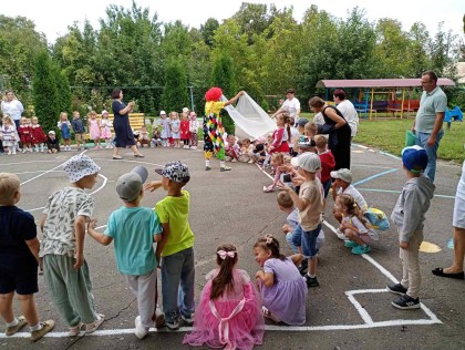 Малята із задоволенням брали участь в іграх, розгадували загадки, спілкувалися з веселим Клоуном та подарували усім присутнім чудовий танок про наш садочок.